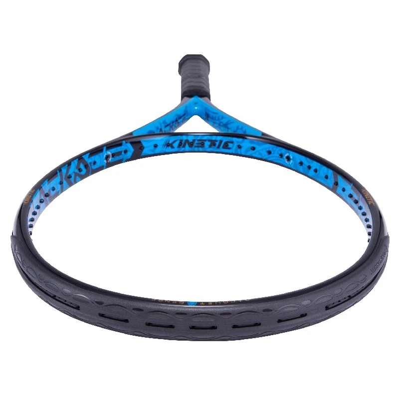 La raquette Black Ace 105 se distingue par une puissance extrême lors des phases offensives et des coups profonds. Conçue pour un style de jeu agressif, même en phase défensive, le cadre est composé de la nouvelle fibre de carbone Aurelian 24k et soutenu par la technologie FlexLogic, qui peut réduire la déformation de la tête du cadre, permettant au joueur de réaliser le meilleur coup possible. Le système Kinetic exclusif à l’intérieur de la tête de la raquette augmente la puissance et procure un confort et une stabilité immédiats au tamis. La chambre d’amortissement Kinetic dans le manche élimine les vibrations des coups et réduit considérablement la fatigue du bras.