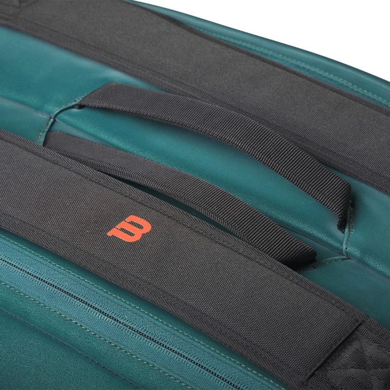 Aux couleurs design de la gamme Wilson Blade V9, le sac thermo Wilson Blade V9 9R peut contenir 9 raquettes ainsi que plusieurs équipements et accessoires de tennis. Il est doté de deux compartiments principaux doublés de Thermoguard pour protéger le matériel et les équipements contre les variations de température. Une poche aéré est également disponible sur ce thermo Blade V9 pour les chaussures, et des poches latérales extérieures viennent offrir un espace de rangement supplémentaire. Le sac sac thermo Wilson Blade V9 9 raquettes vert dispose de poignées de transport solides et de bretelles réglables pour faciliter son transport lors des déplacements.